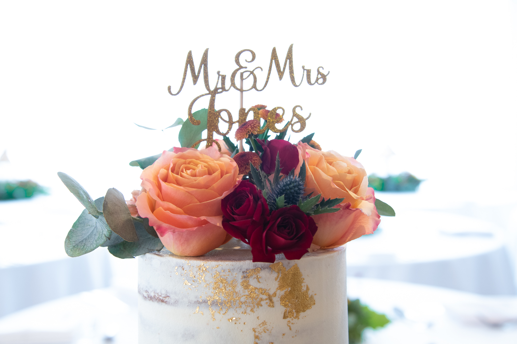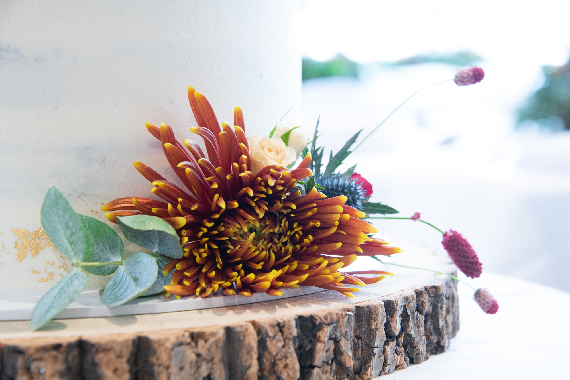 Beautiful autumnal blooms and foliage with a touch edible gold leaf for this gorgeous 3 tier Semi-Naked cake.