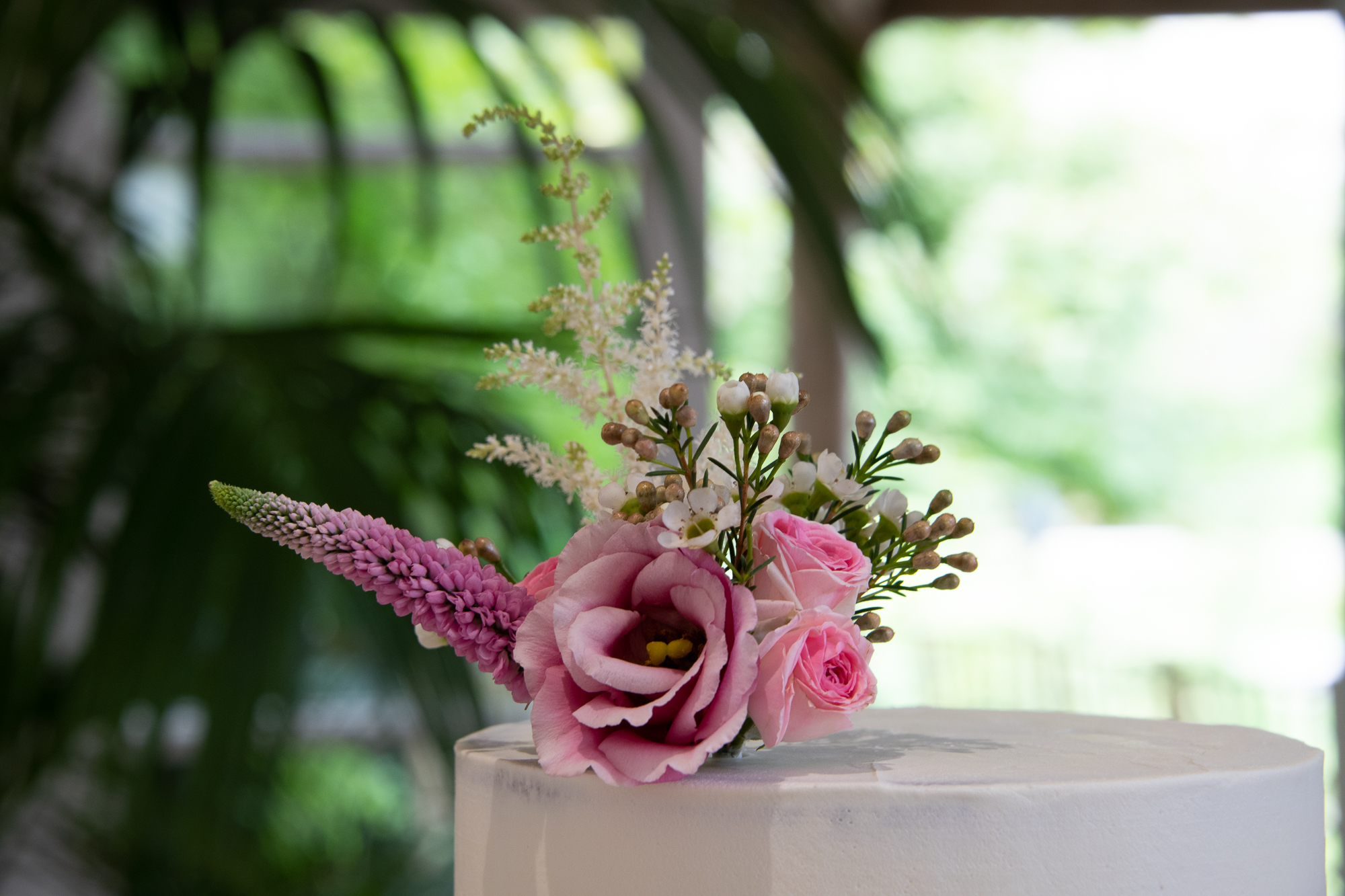 A Beautiful split 3 tiered semi-naked cake with stunning dusky pink blooms.